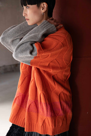 ケーブル配色ニット(orange)