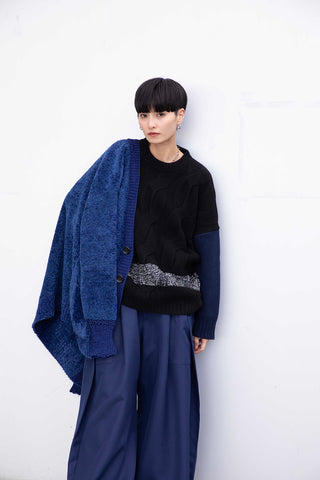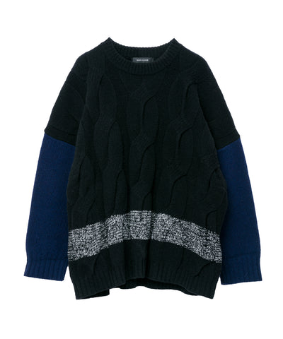 ケーブル配色ニット(black)