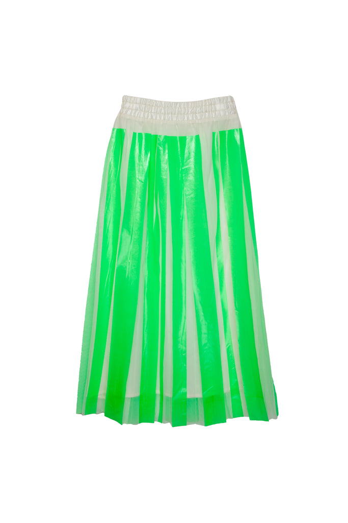 ラバープリント・ハンドプリーツスカート (limegreen)