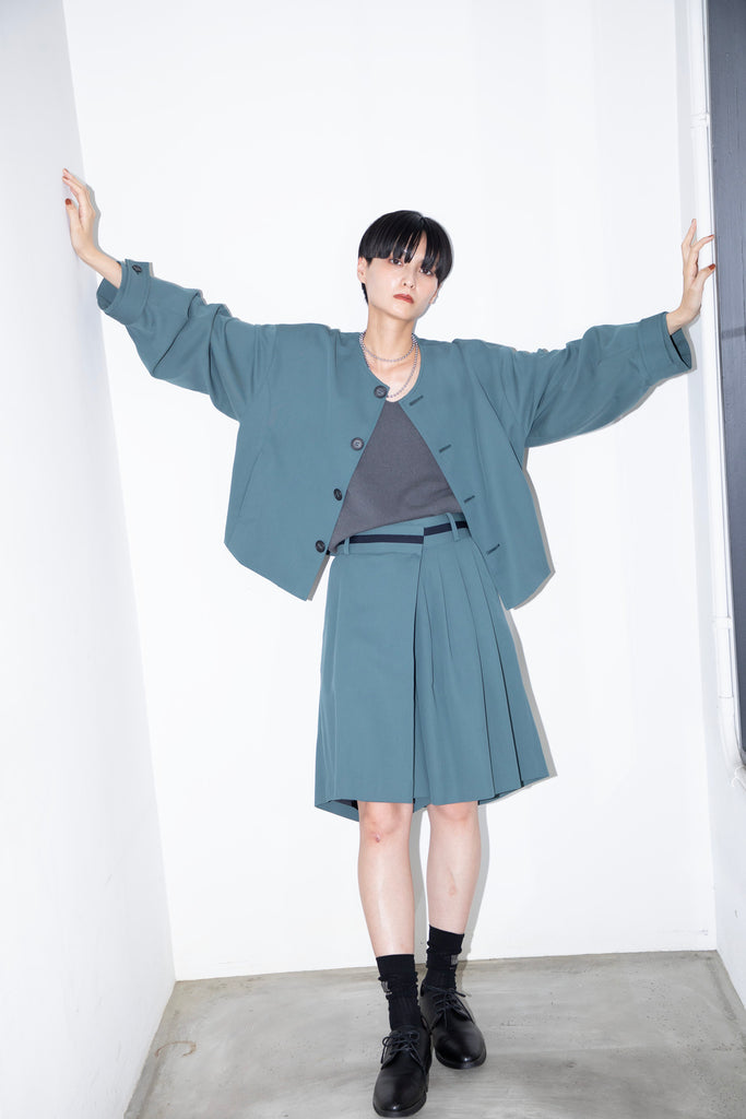 同素材のノーカラーショートジャケット(N0626S0012)とのセットアップもおすすめです。