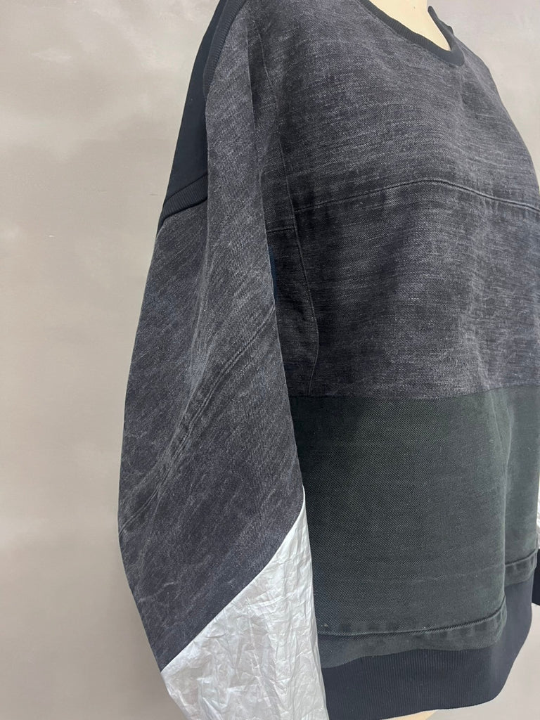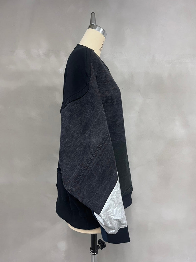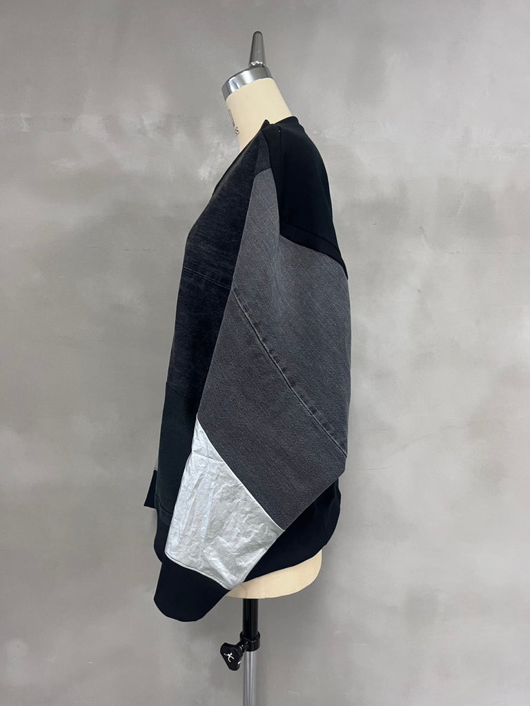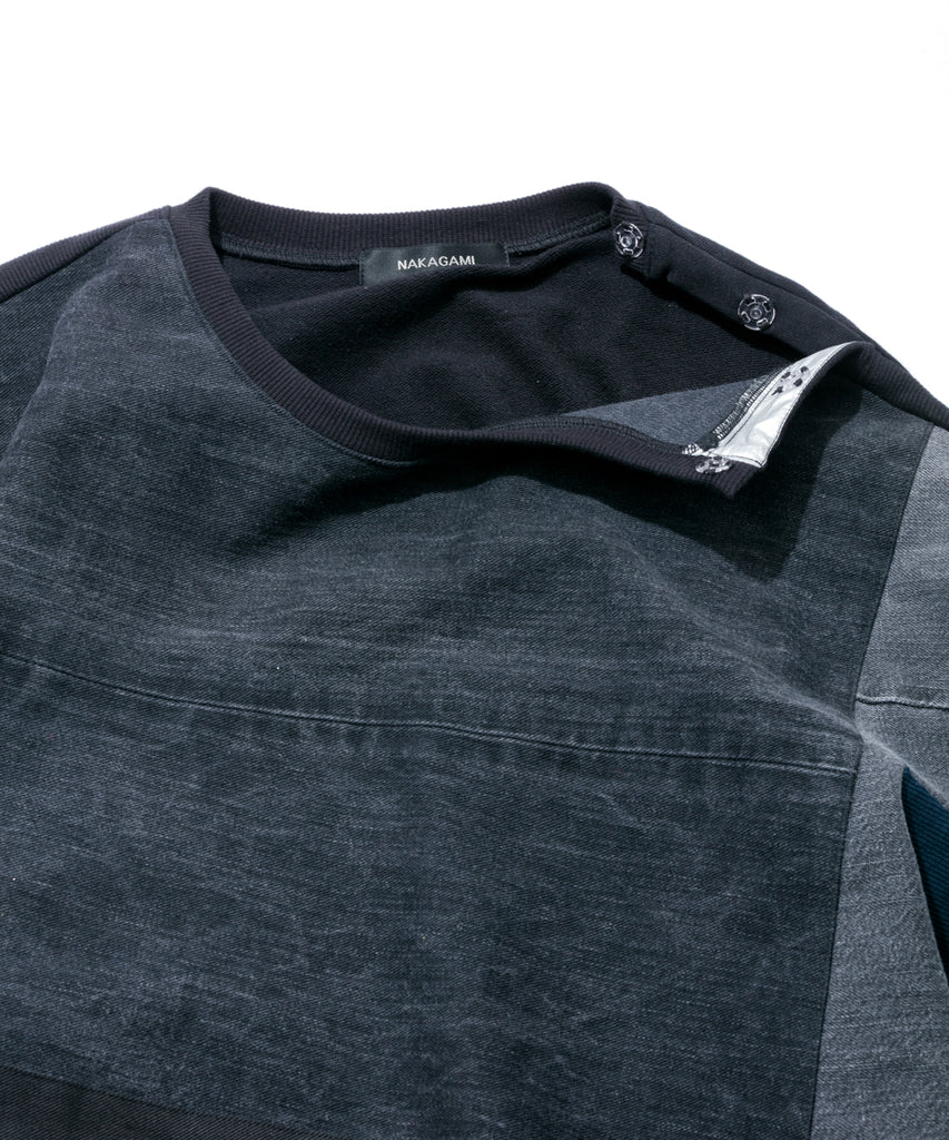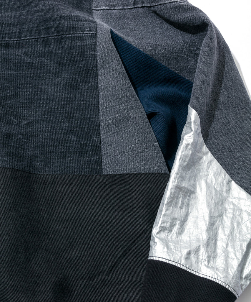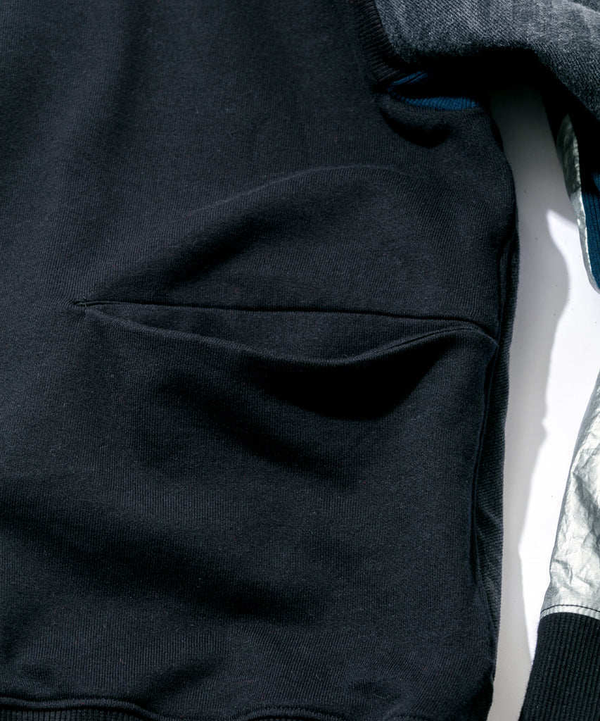 脇下部分にリブ、後ろ身頃はスウェット素材といったユニークな