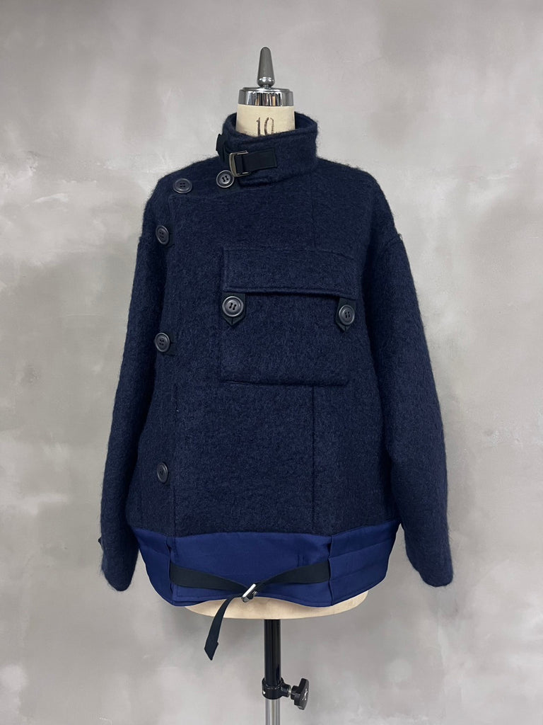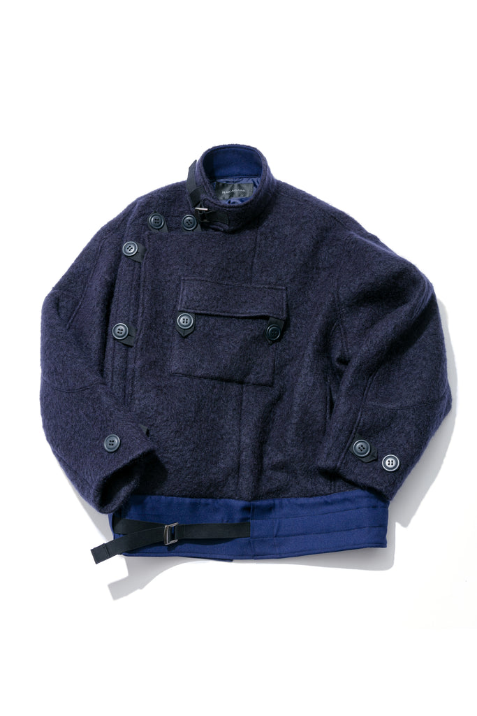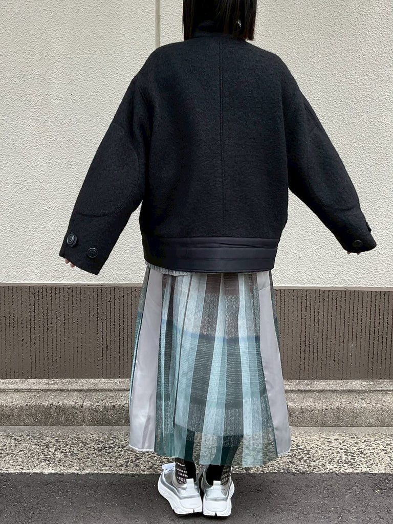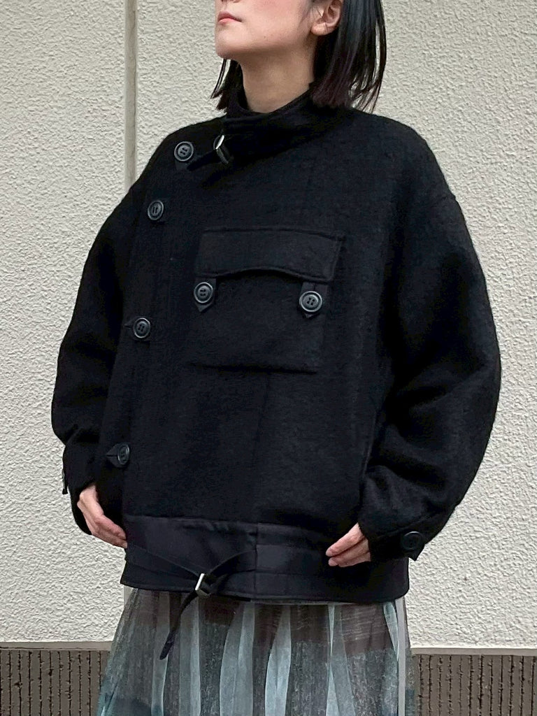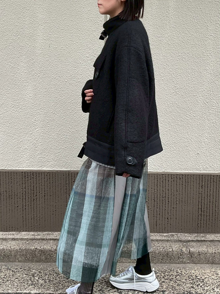アシンメトリーなフロントスタイルや大きめなポケットが印象的です。