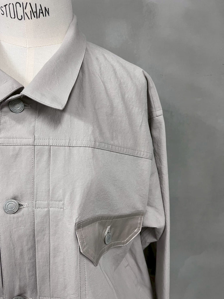 ゆったり目にデザインされたGジャン。東炊きという、昔ながらの手法で仕上げた素材を使用しており機械では出せない自然な膨らみやナチュラルな発色が特徴で、柔らかい着心地が魅力的な1着です。胸ポケットのフラップを異素材で切り替えたデザインがポイント!春先にTシャツの上にサラッと羽織っていただけます。N0426S0004ABとのセットアップもおすすめです。