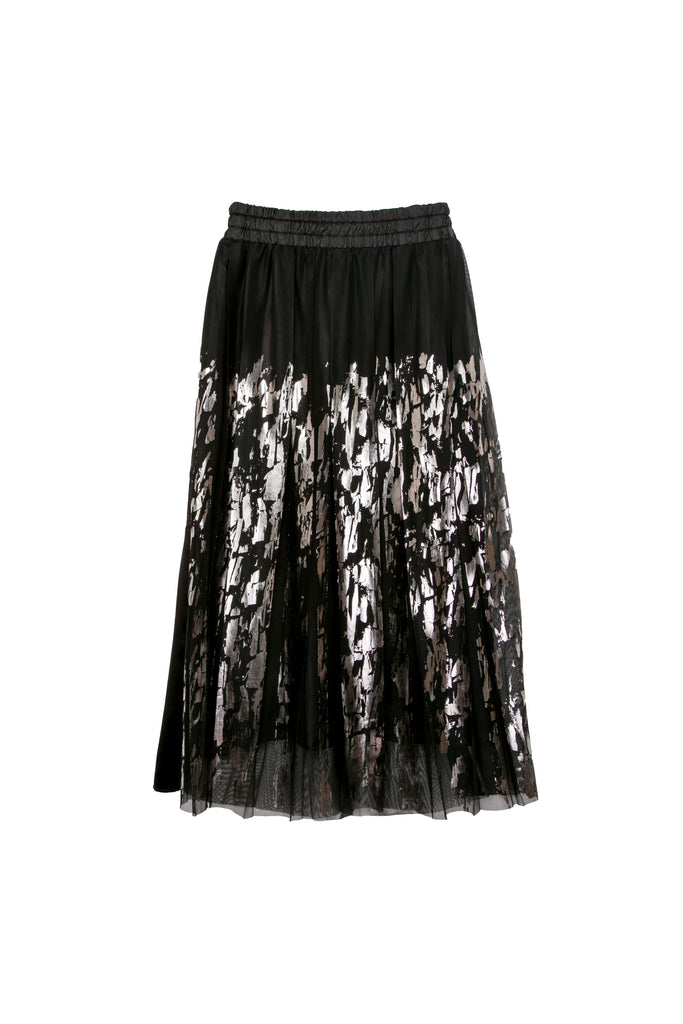 その上に箔をプリントしたNAKAGAMIらしいチュ-ルスカートです。