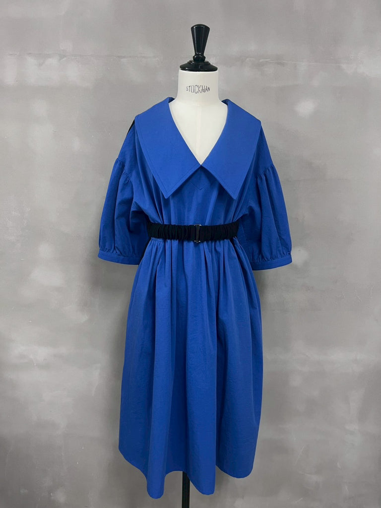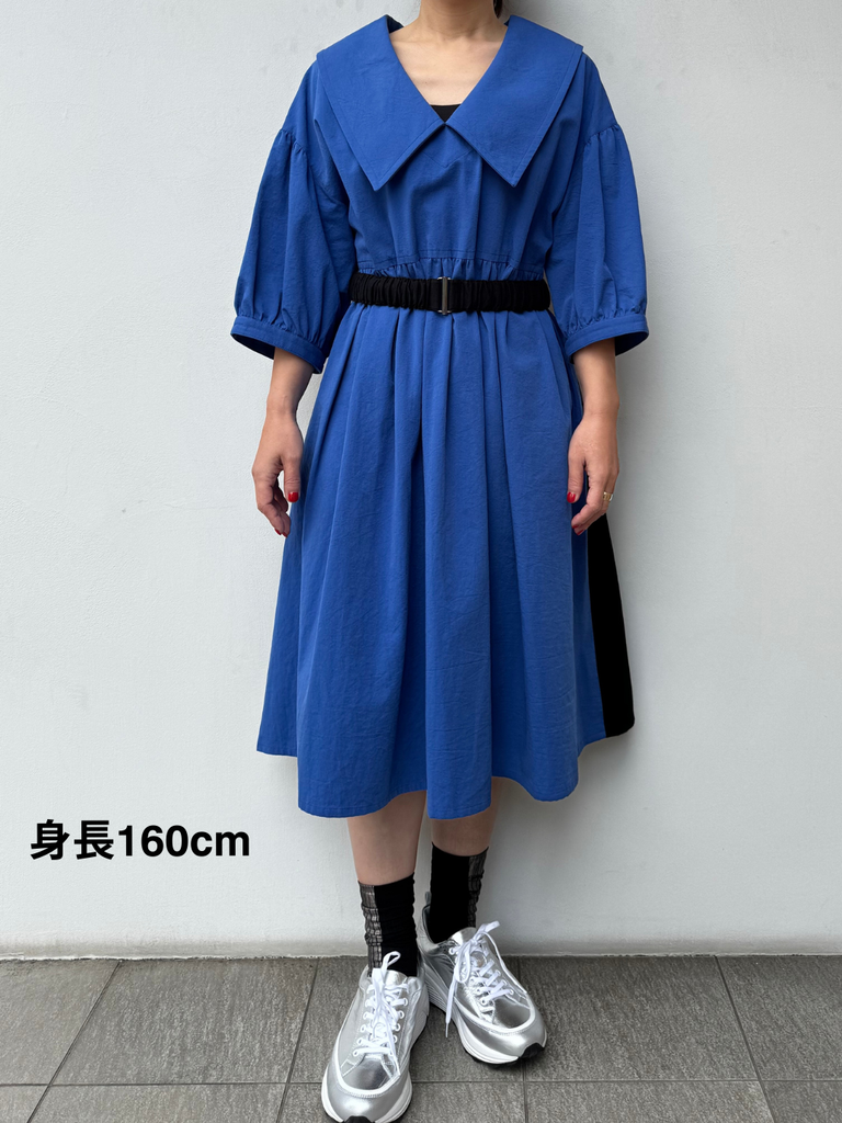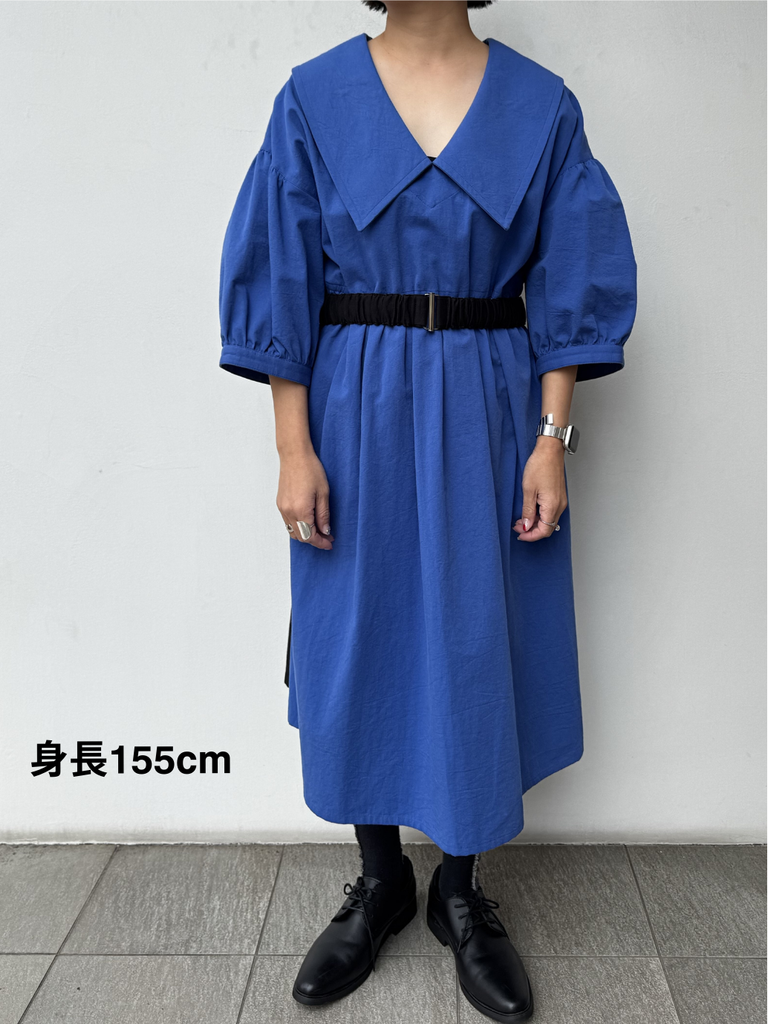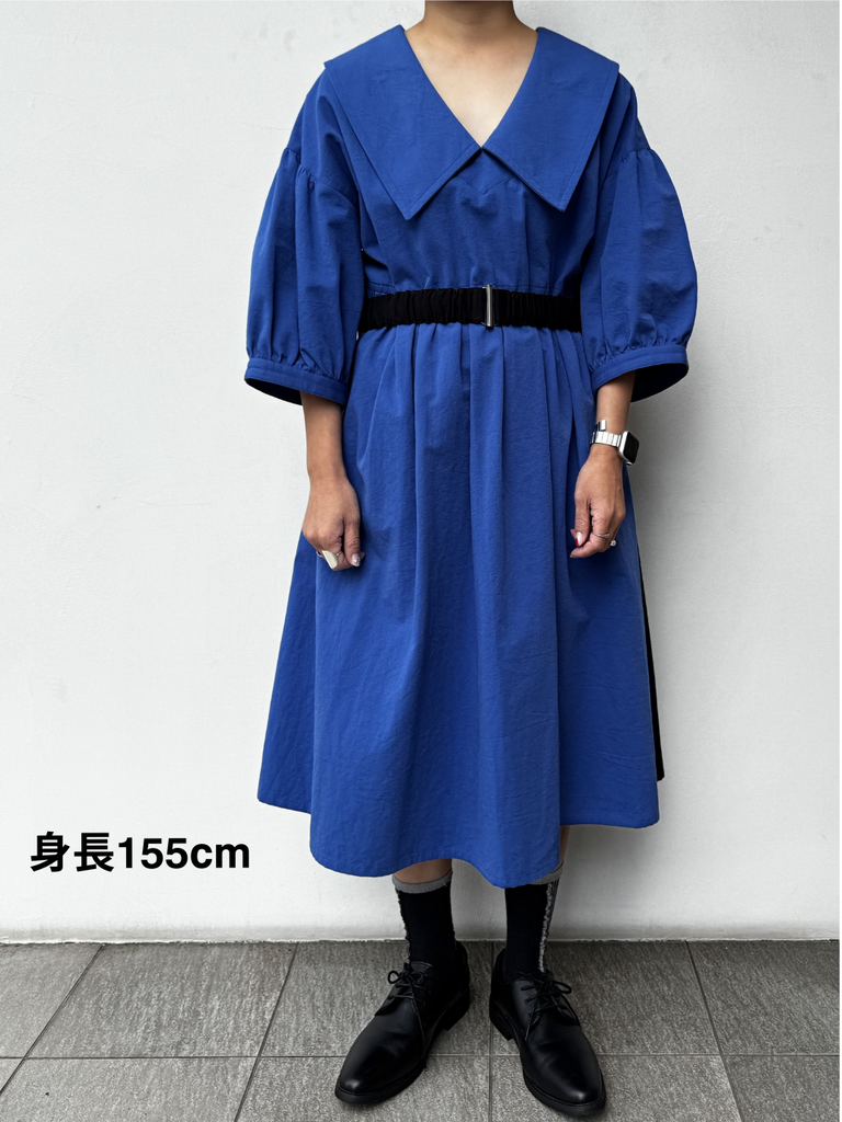 女性らしい大きめの衿が特徴のワンピース。ウエストベルトはコーディネートに合わせ着脱が可能です。東炊きという、昔ながらの手法で仕上げた素材を使用しており機械では出せない自然な膨らみやナチュラルな発色が特徴で、柔らかい着心地が魅力的な1着です。1枚でもインナーとのレイヤードなとコーディネートの幅が広がりお楽しみいただけます。