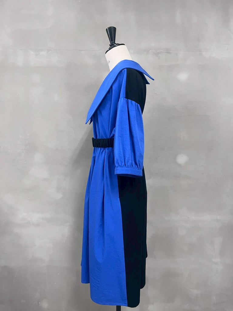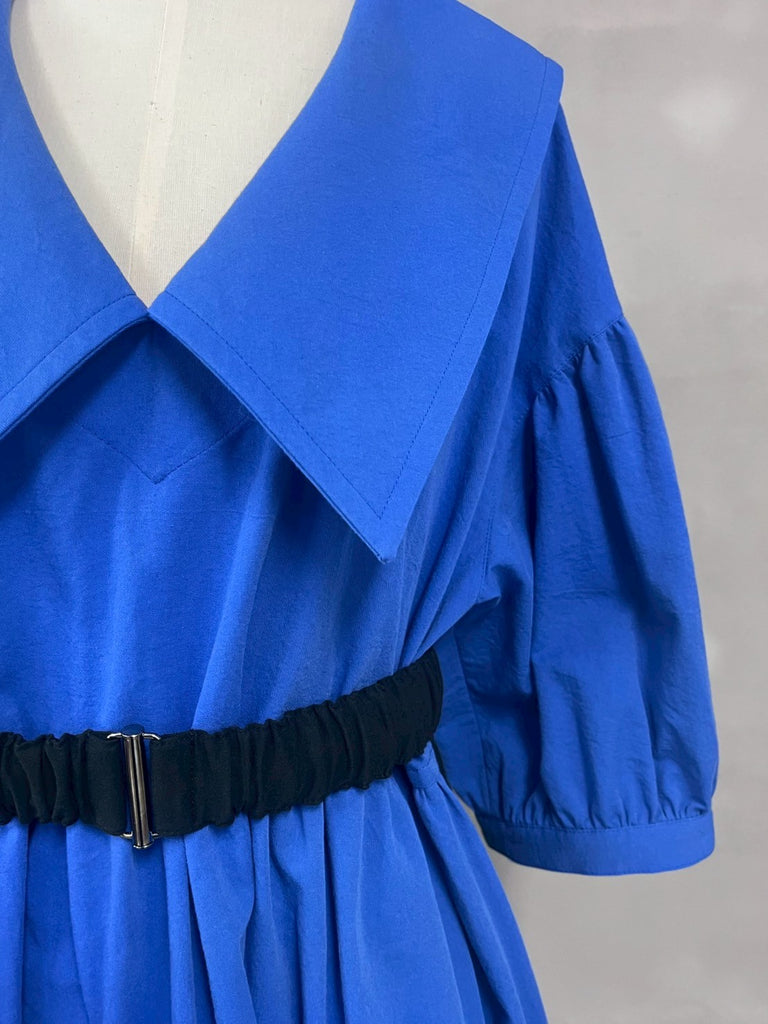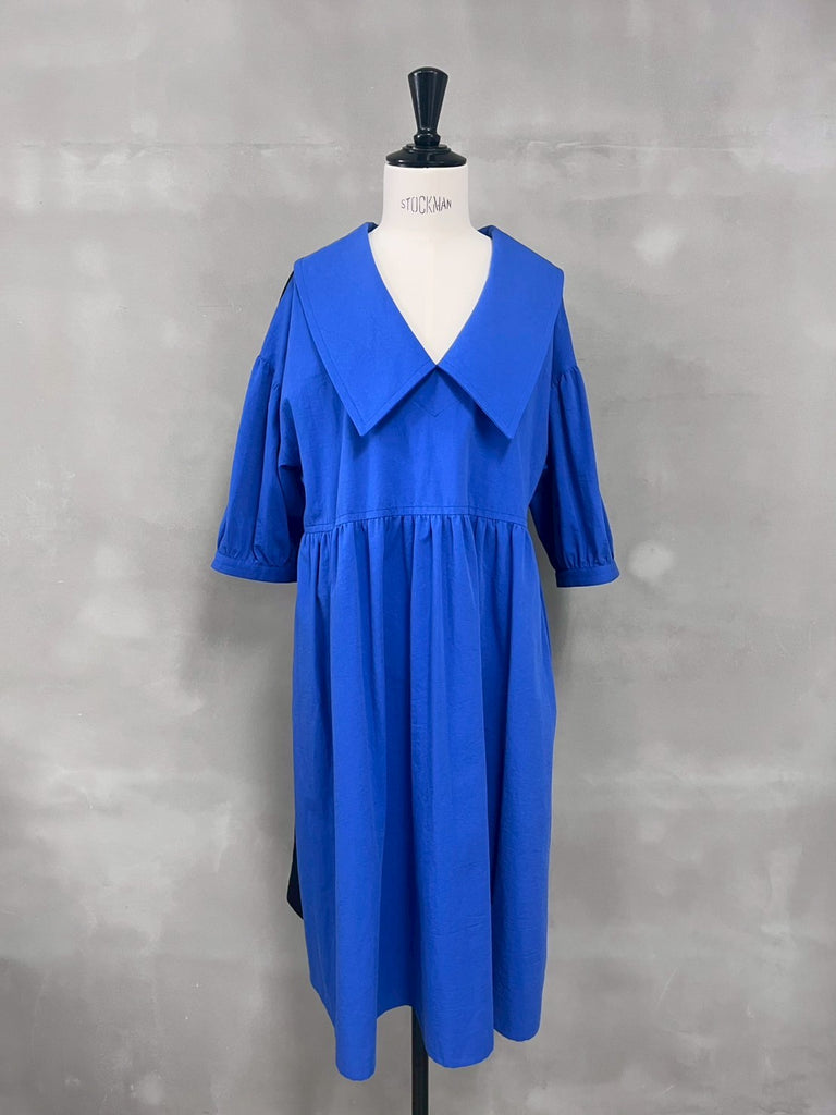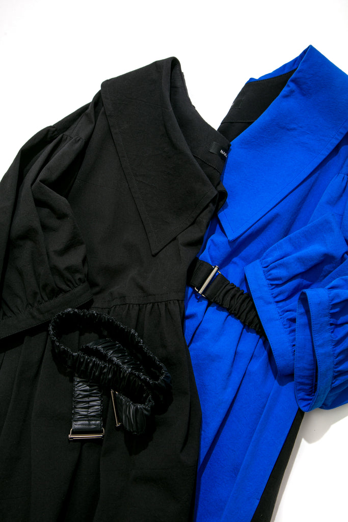 女性らしい大きめの衿が特徴のワンピース。ウエストベルトはコーディネートに合わせ着脱が可能です。東炊きという、昔ながらの手法で仕上げた素材を使用しており機械では出せない自然な膨らみやナチュラルな発色が特徴で、柔らかい着心地が魅力的な1着です。1枚でもインナーとのレイヤードなとコーディネートの幅が広がりお楽しみいただけます。