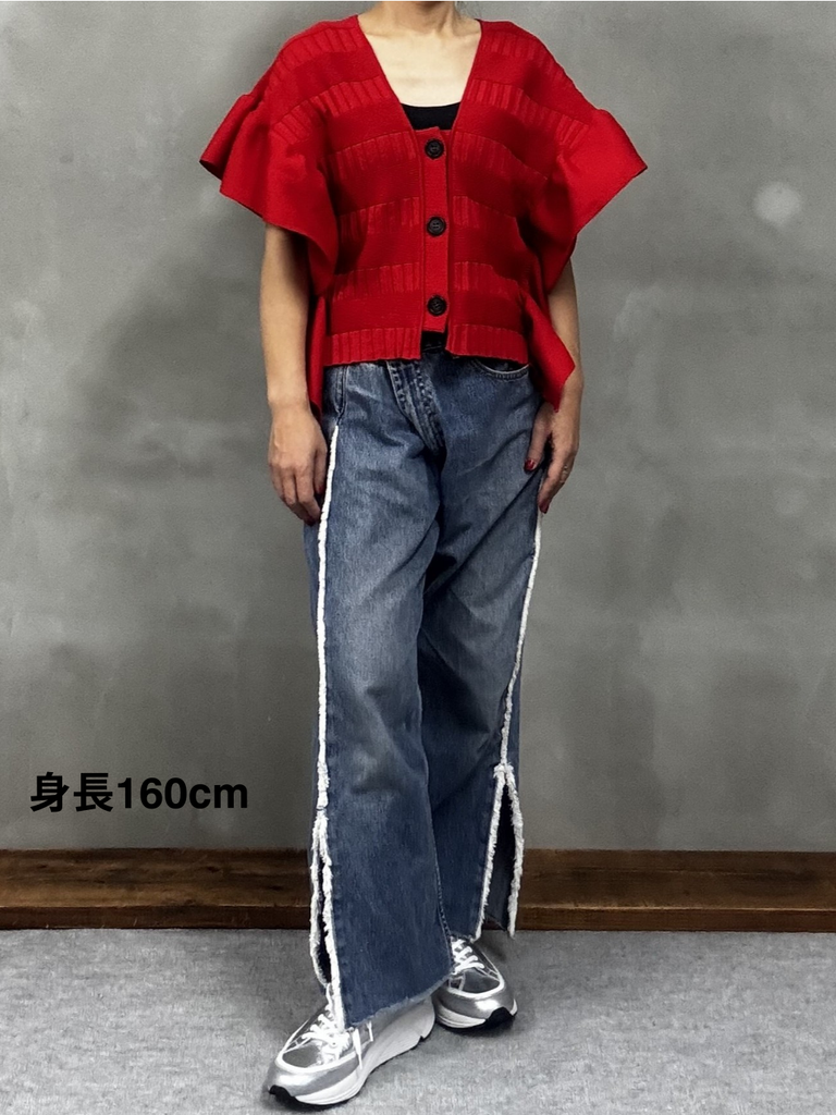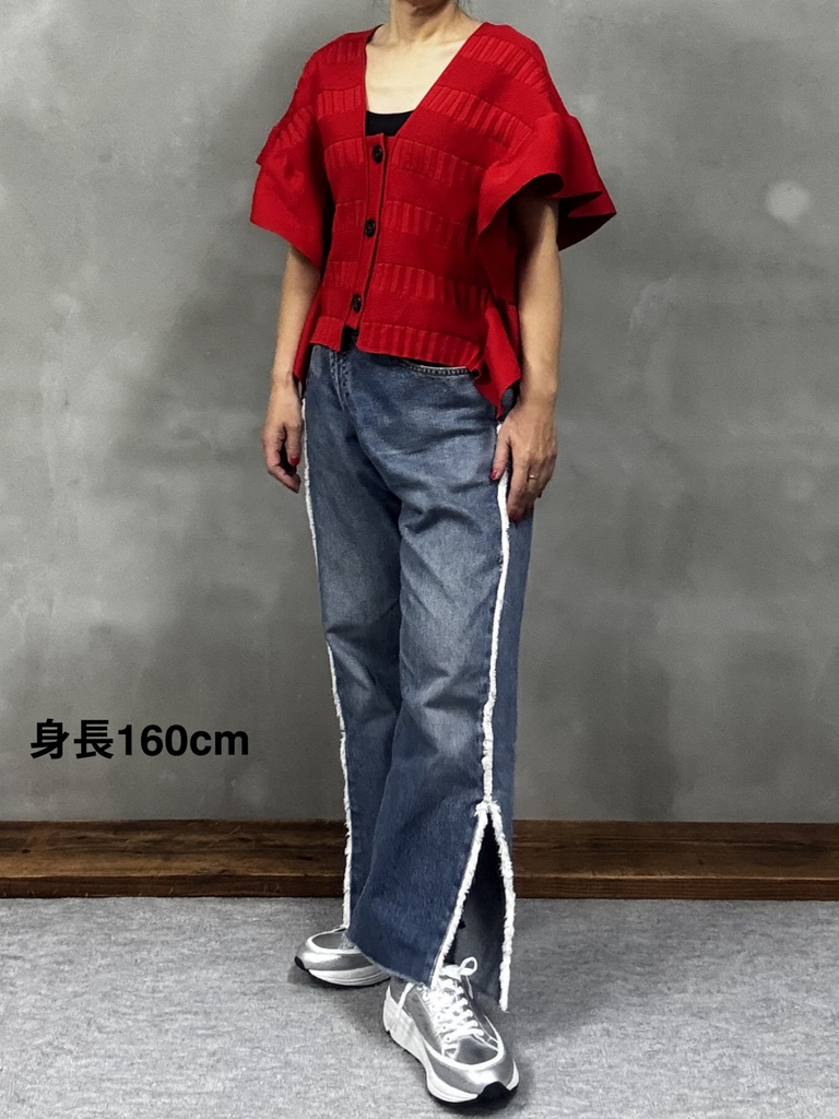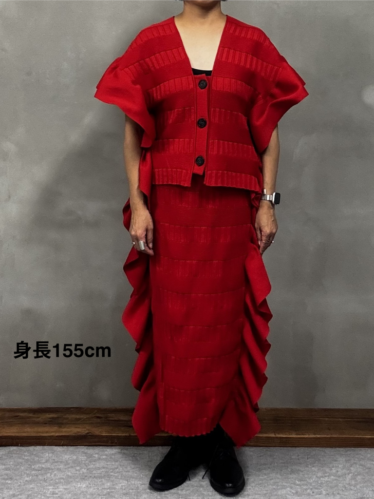 同素材のN0726S0008(フリルニットスカート)とのセットアップもおすすめです。