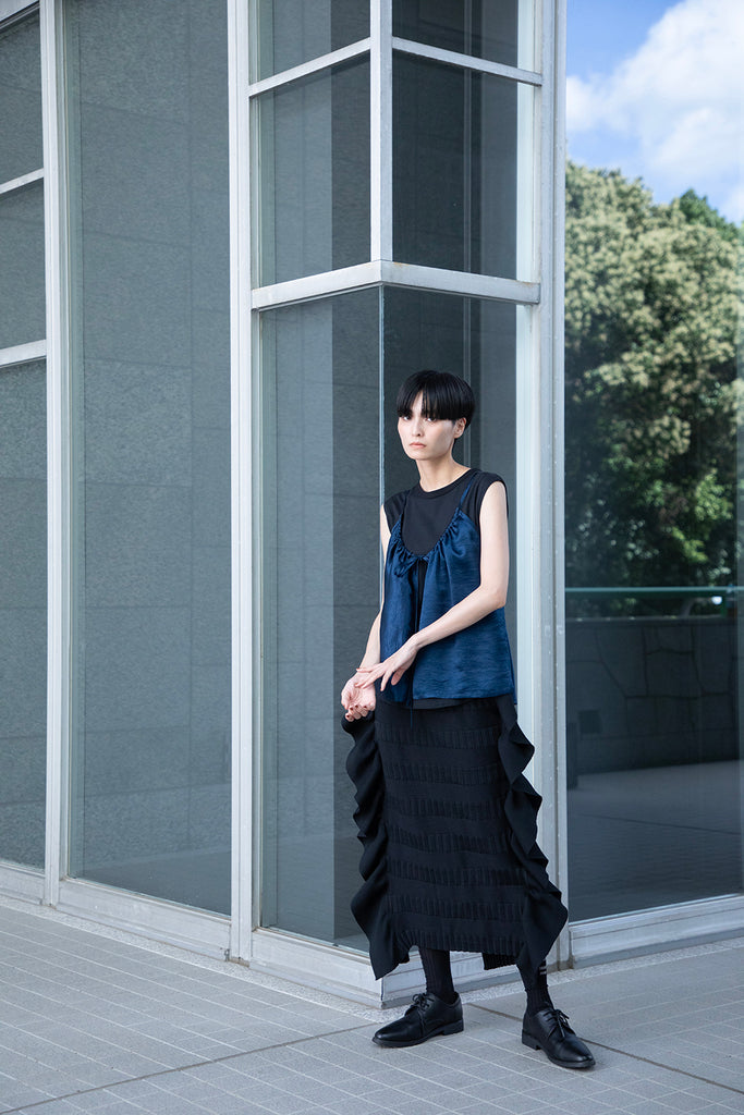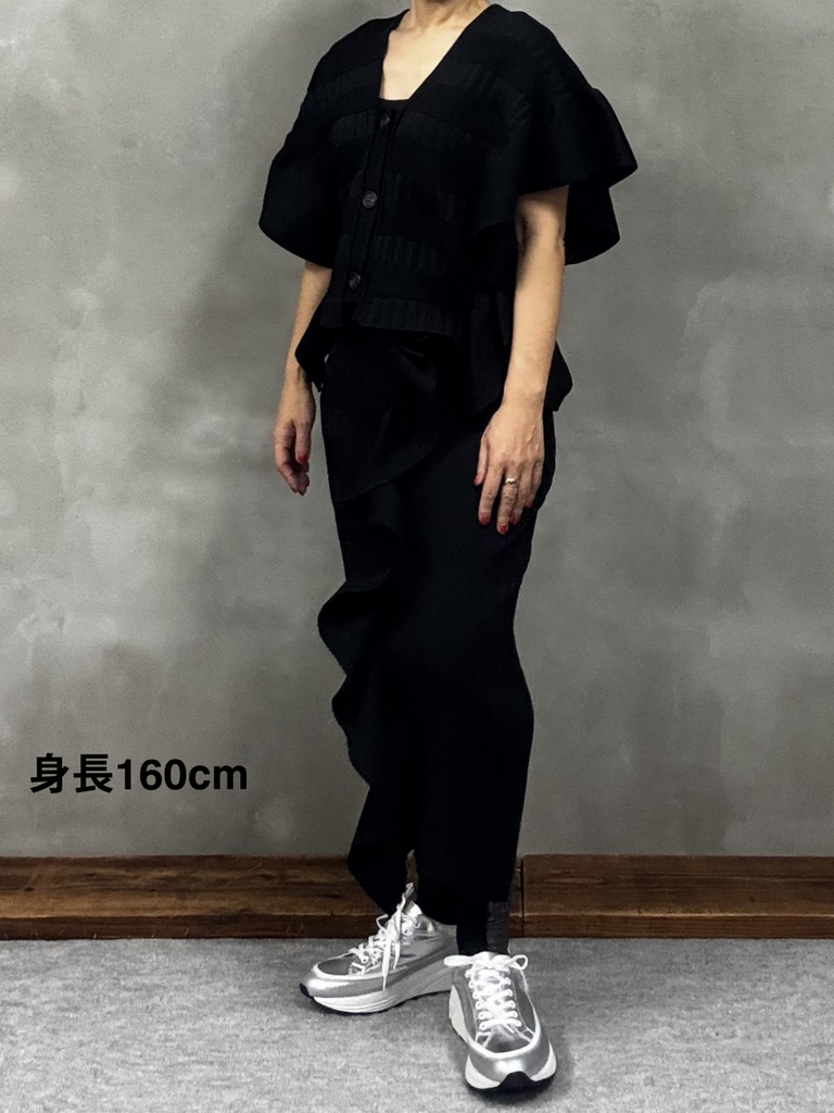 N0726S0009(フリルニットカーディガン)とのセットアップもおすすめです。