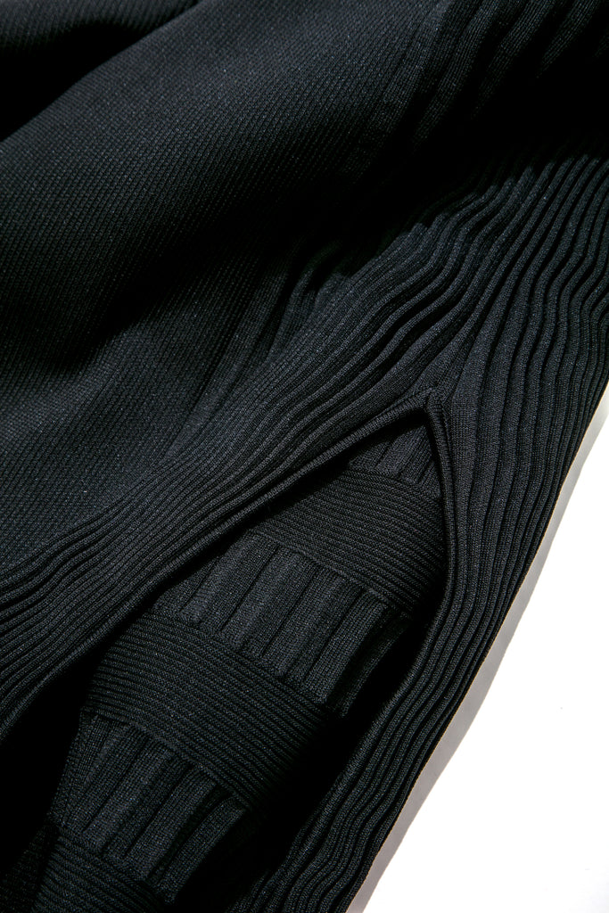 前後で編地を変えているのでウエストをくるくる回し好きな位置で履いていただけます。