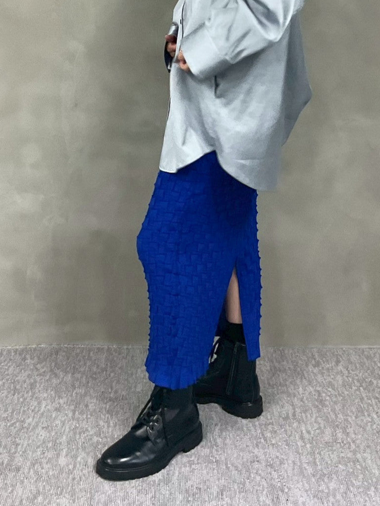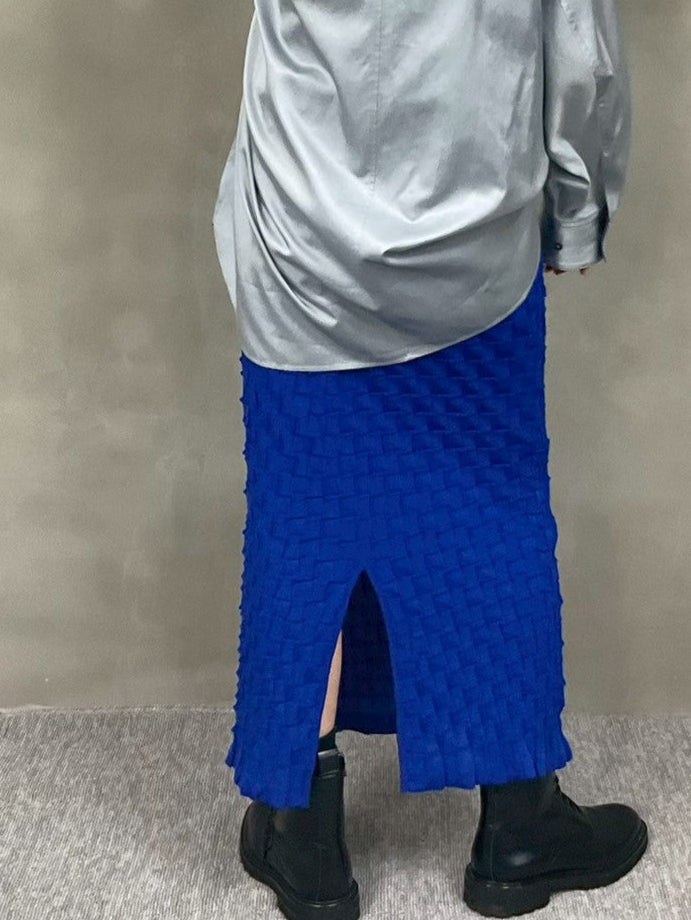 ポコポコと立体感のあるデザインがかわいいニットスカートです。