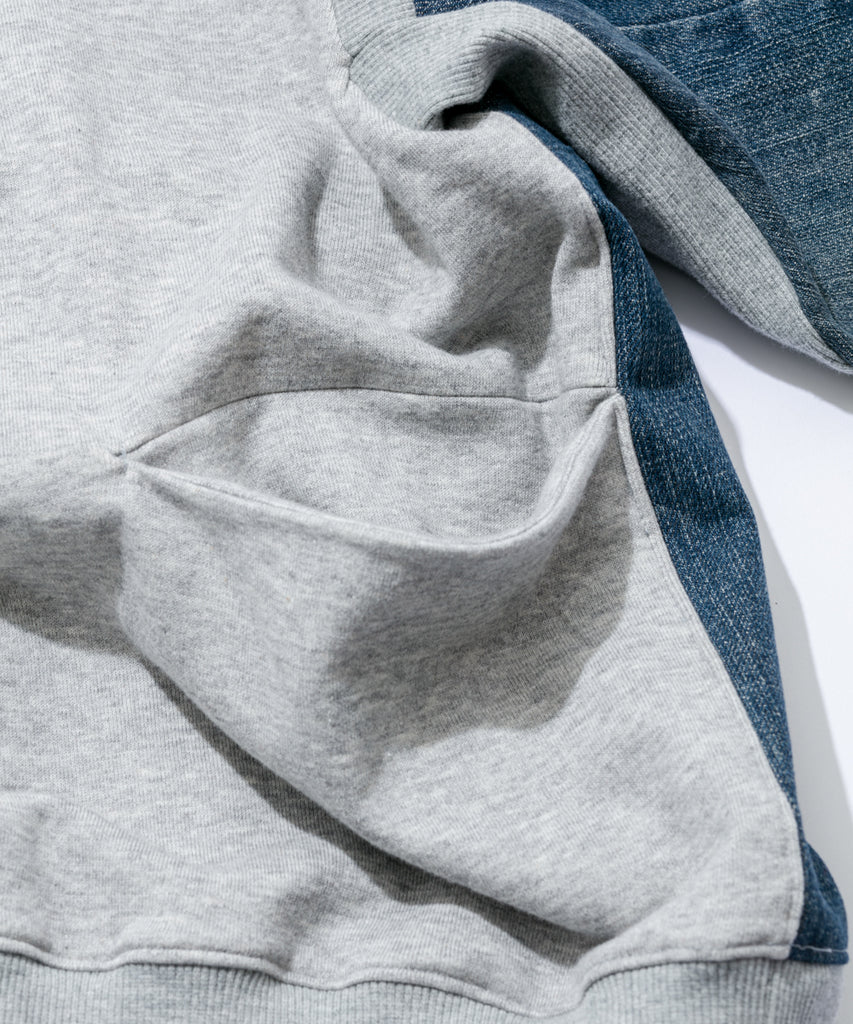 脇下部分にリブ、後ろ身頃はスウェット素材といった