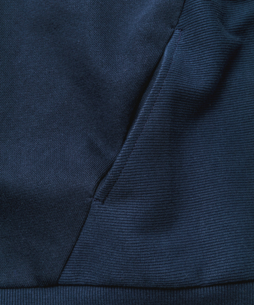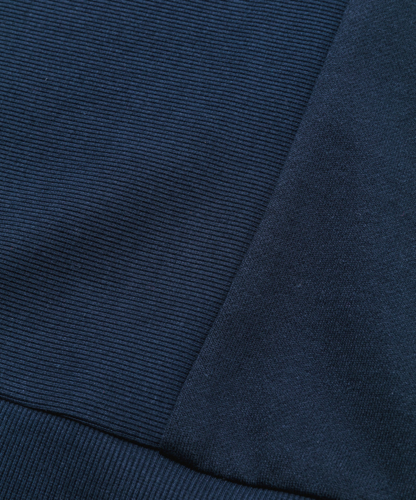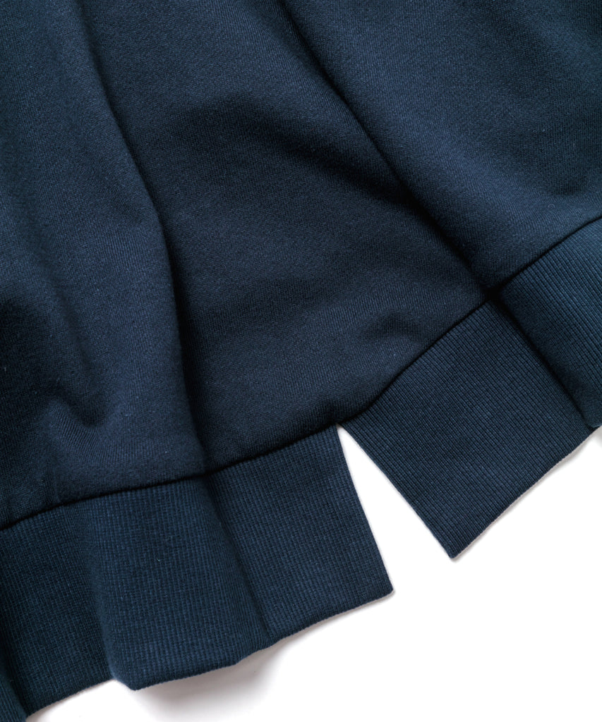 裏毛とリブを組み合わせたデザインは、スウェット特有のカジュアルさを軽減してくれます。