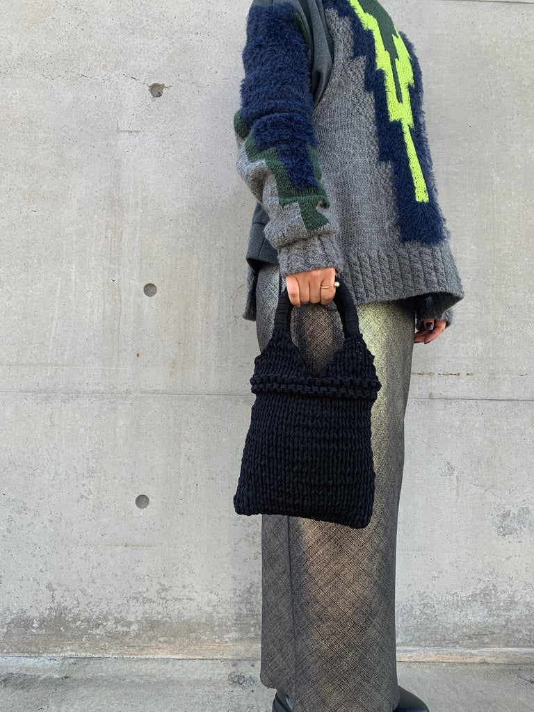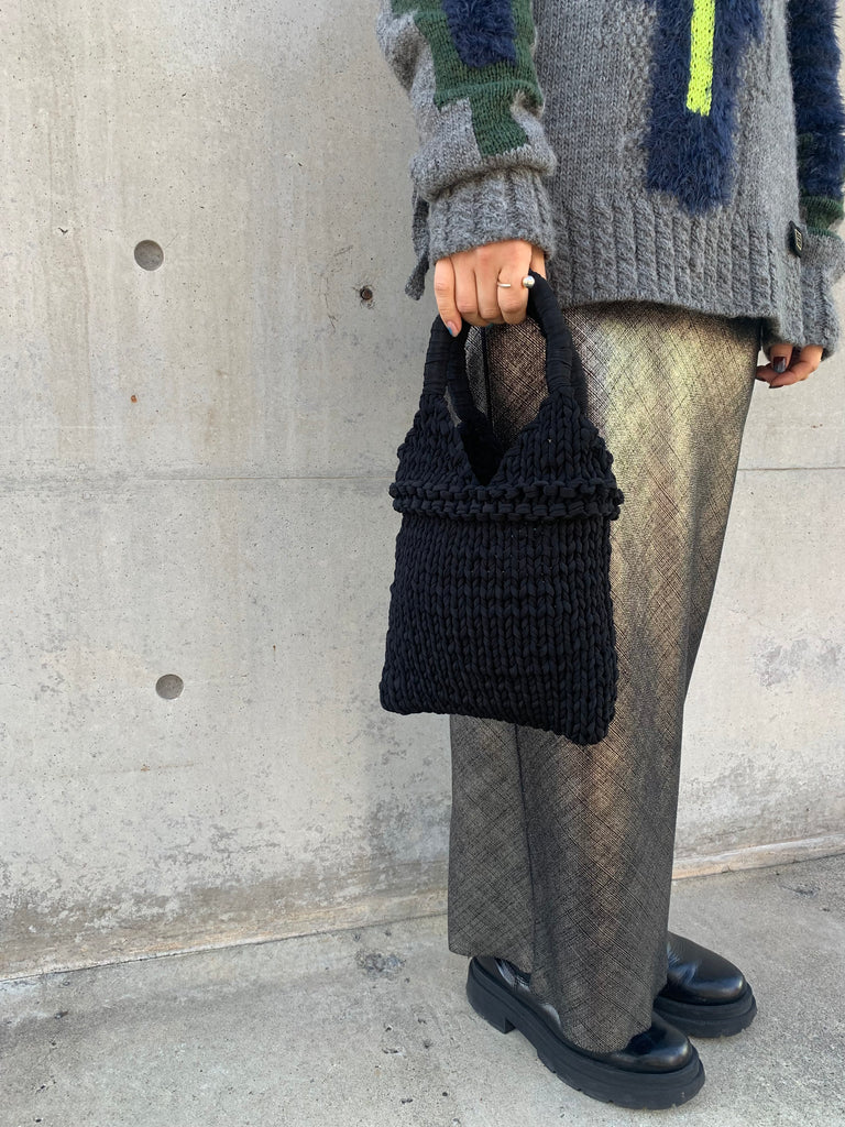 手編みならではの優しいお出かけ印象がありながら、マットな質感が上品さを与えてくれるため、カジュアルでも綺麗めなスタイリングにも合わせやすく、シーズン問わずお使いいただけます。