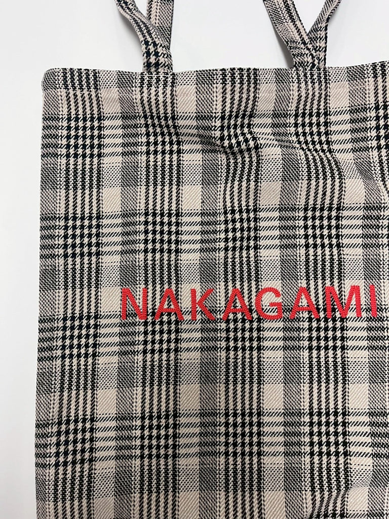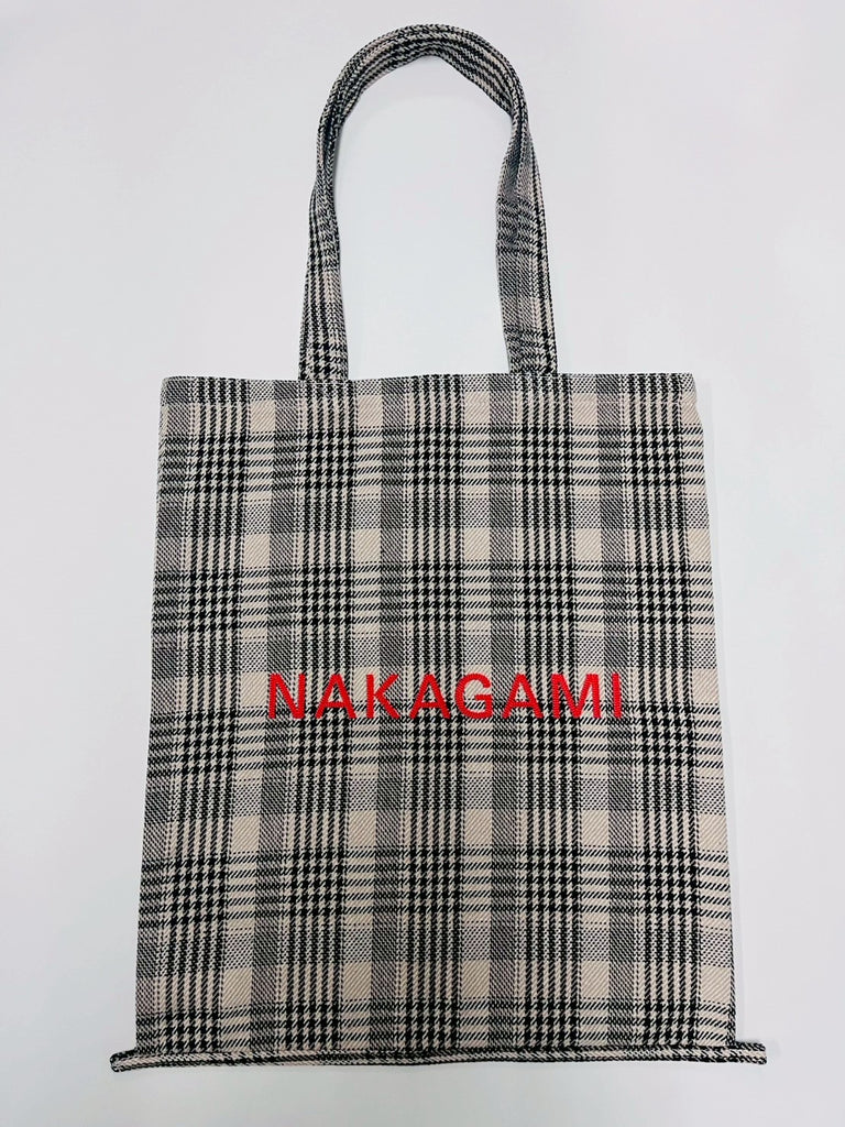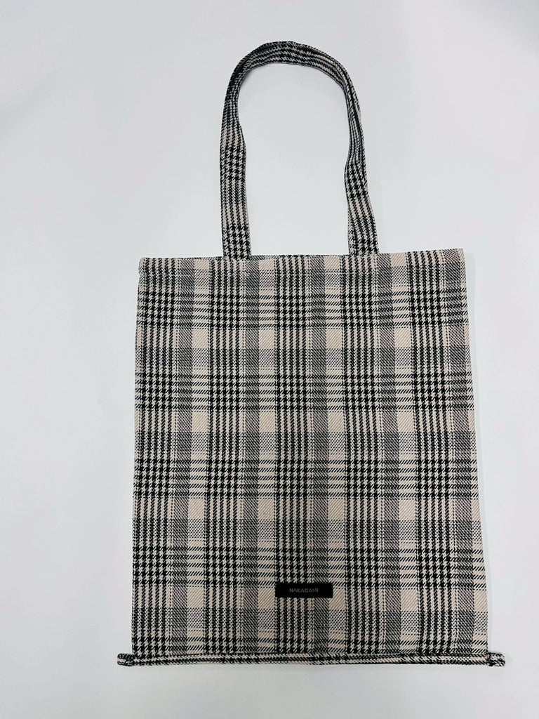 ジャガード織りチェック柄が特徴の収納力抜群のトートバッグです。