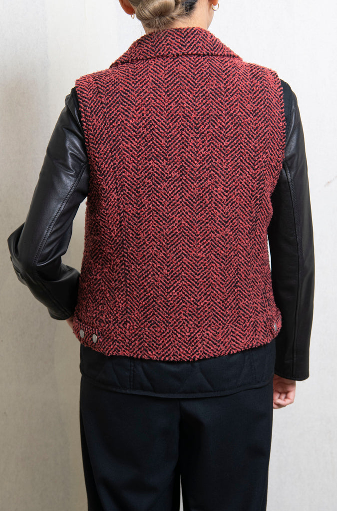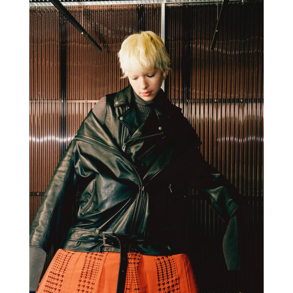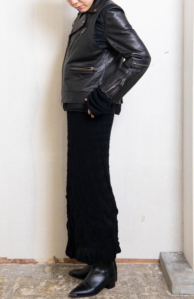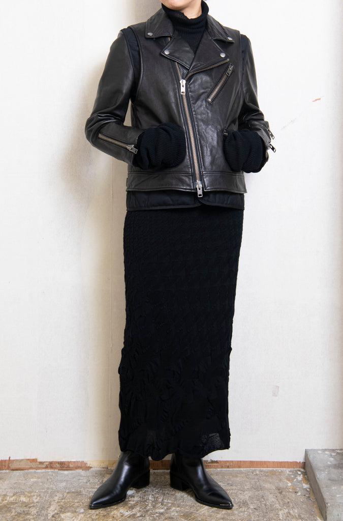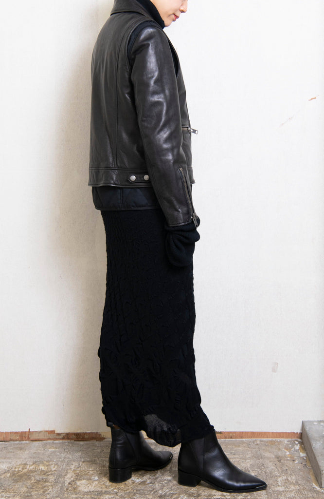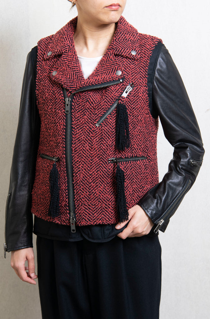 レザーのベストN0621A0023/レザーライダースベスト(cow leather)とレイヤードしてご着用頂き、一枚のレザージャケットのように見えます首元はVネックで、ベストを重ねても見えないような深さですが、一枚で着た時には開きが深すぎず、スッキリとした印象に仕上げてくれるデザインとなっております。