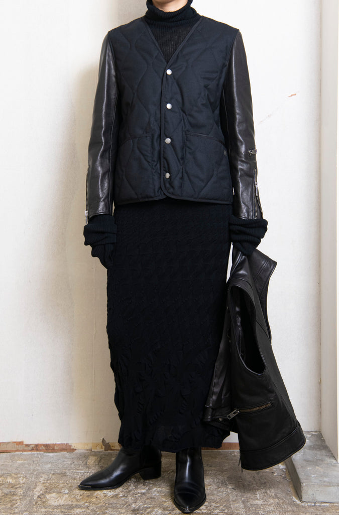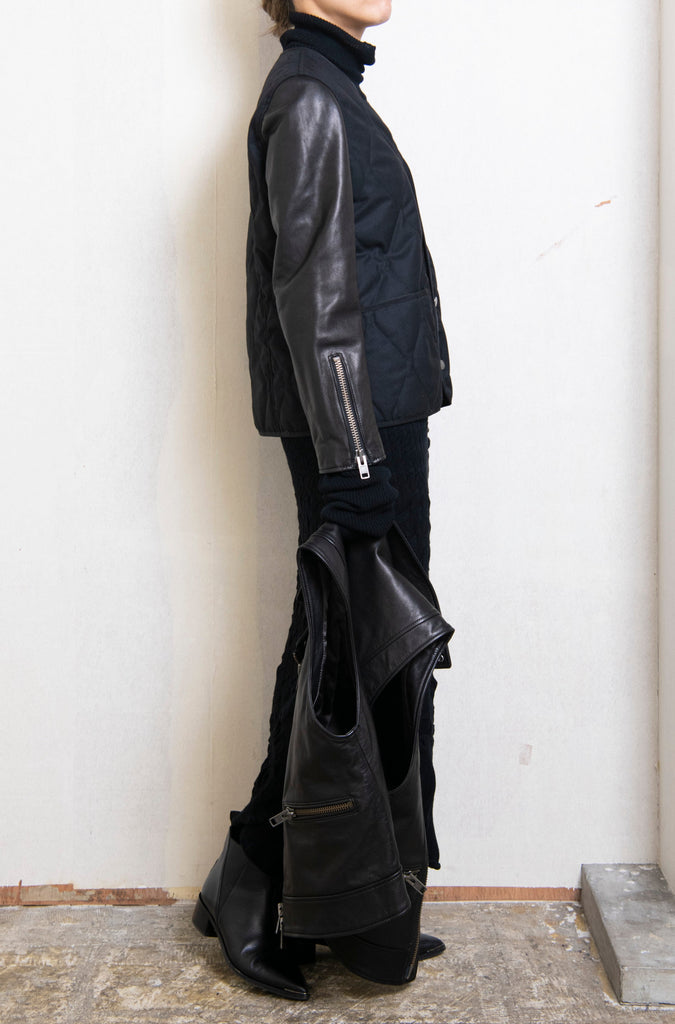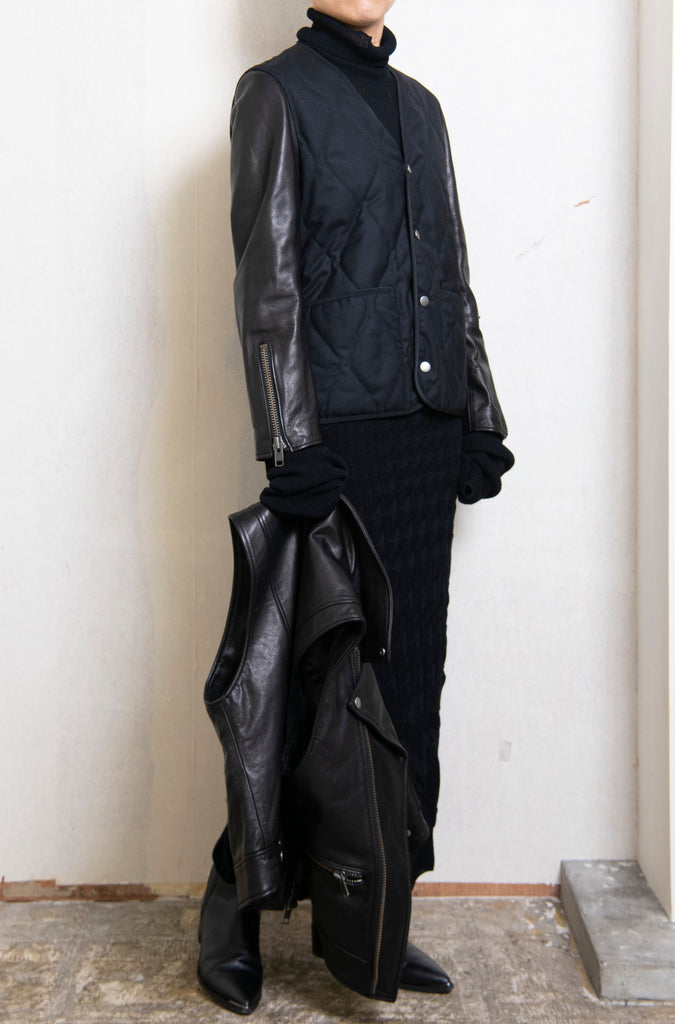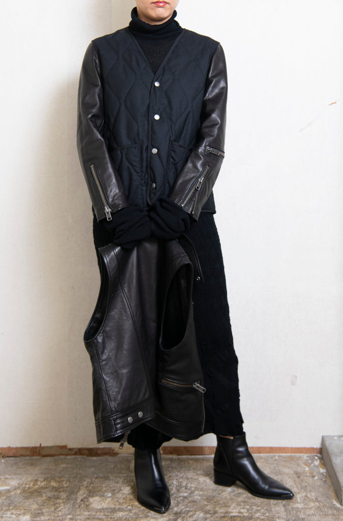 身頃がキルティングで、袖が牛革に切り替わっているライナーです。
