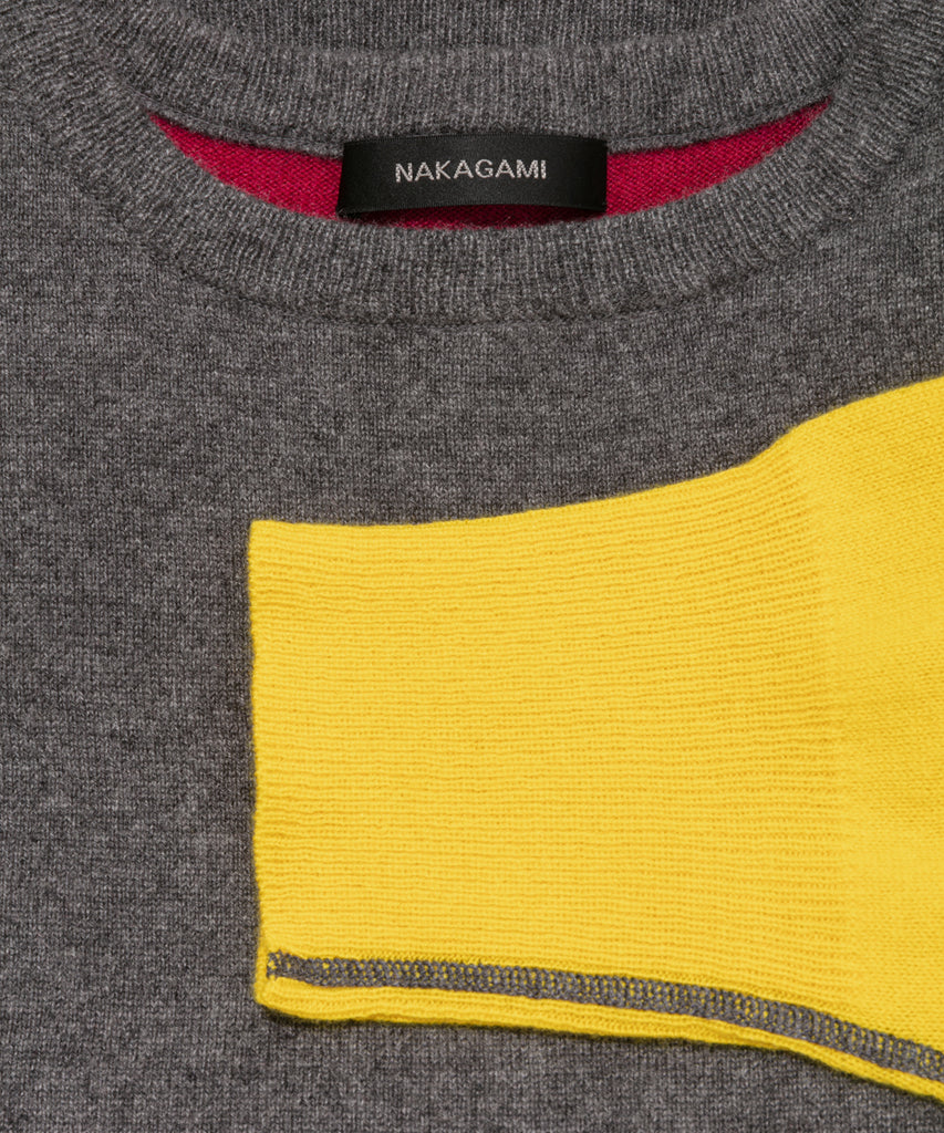 イタリー糸ならではの綺麗な発色で、前後や左右で異なるカラーの切替がNAKAGAMIらしい遊び心溢れたデザインです。